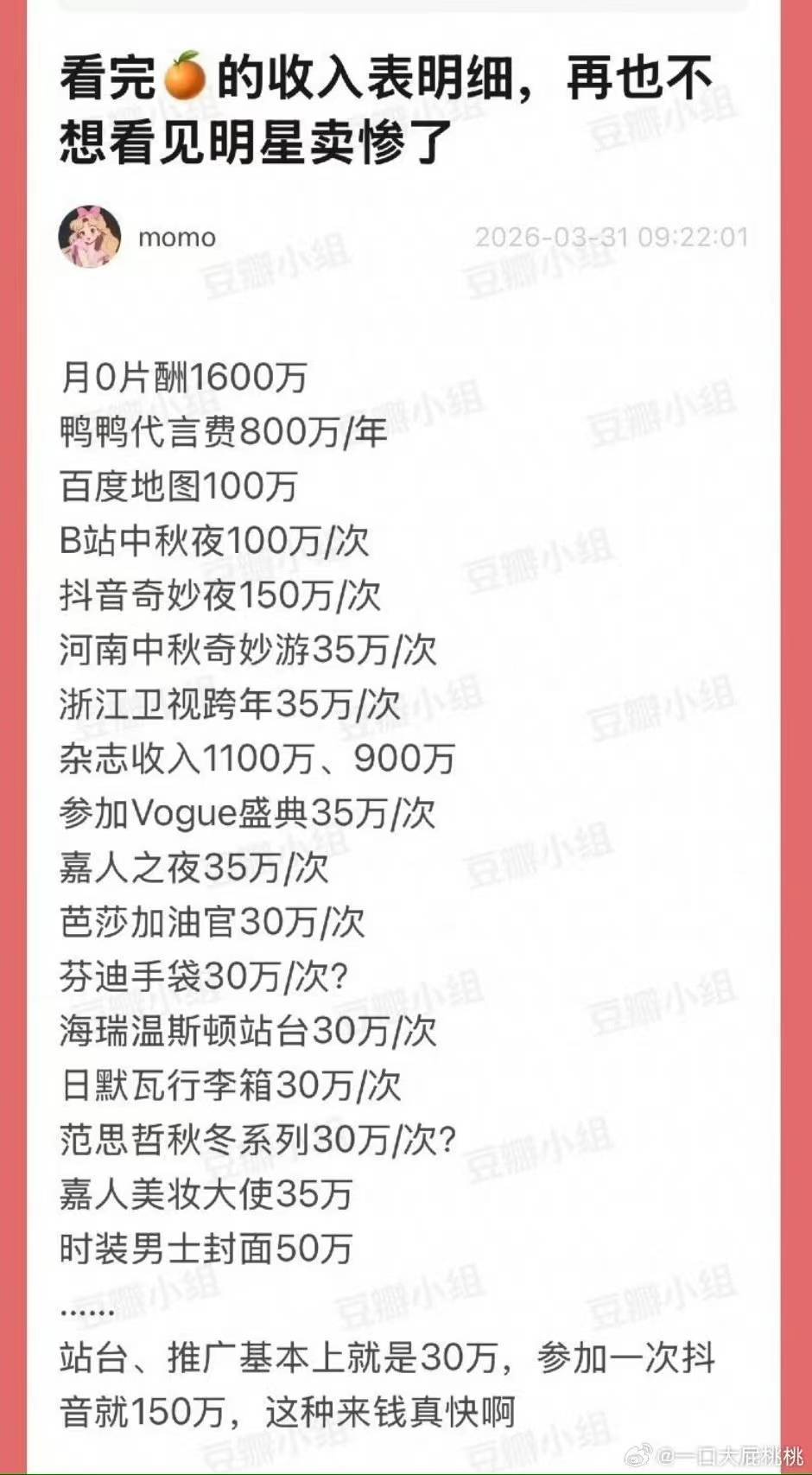 网友对明星收入巨高也是反应太真实了,很多人都非常羡慕。